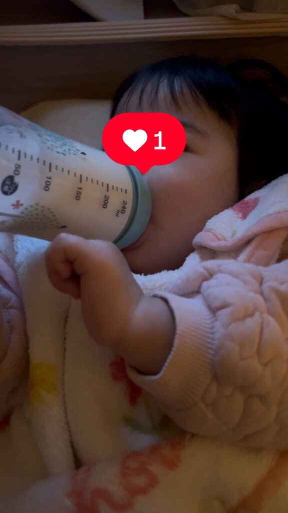 1歳1か月、まだ朝晩だけミルクを飲むのでミルクタイム