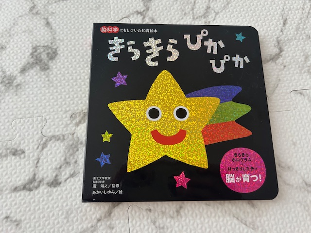 配色が強いうえにホログラムできらきらぴかぴかしている絵本。