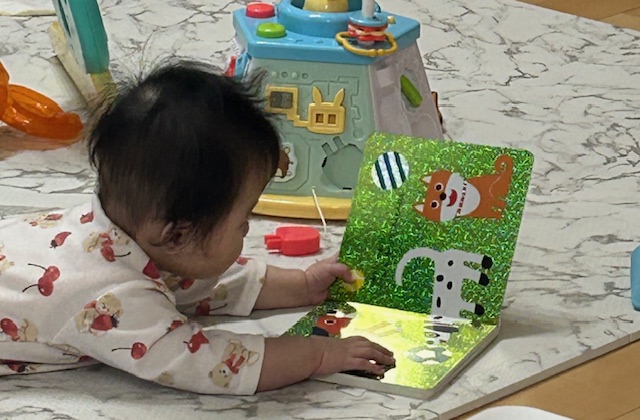 絵本の色や形、ページをめくる動作などが